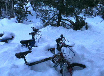 Anyone for a bike ride? Bikes in the Grand Canyon in winter, they just hibernate and hibernate.